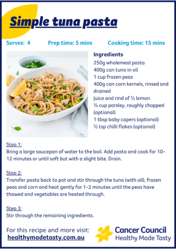 Download and share this recipe snippet. With just a handful of ingredients, this simple tuna pasta recipe can be thrown together in minutes and is the perfect budget-friendly meal.